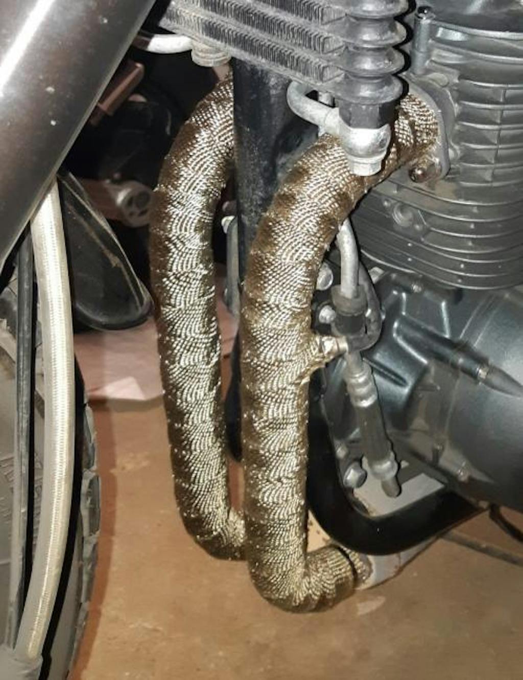 Les bandes d'échappement a résistance thermique pour les ligne d'échappement libre type CAFE RACER permettent d'apporter de la protection contre les brulures au motard mais également de conserver la température de l'échappement et ainsi diminuer le rayonnement de la chaleur jusqu'à 50%.