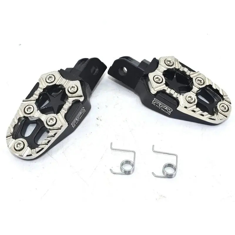 N'oubliez pas, ces cale-pieds sont universels et s'adaptent à de nombreuses motos, scooters et 50cc. Cependant, vérifiez bien la compatibilité des axes et entraxes de fixation avec votre modèle pour une installation parfaite.