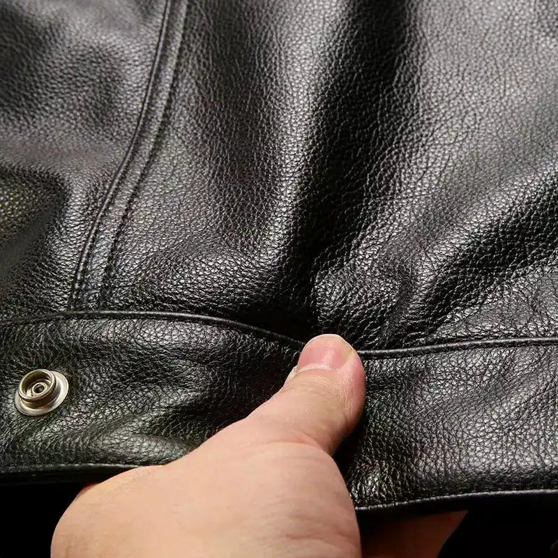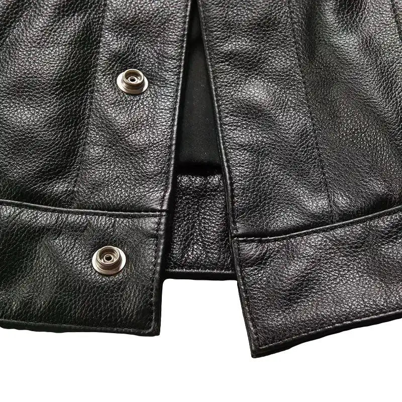 Ce gilet est réalisé à partir de cuir de vache de 1,6 mm d'épaisseur. La double couture assure une résistance optimale, évitant toute déchirure ou usure prématurée.