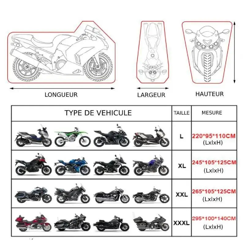La couche extérieure de la housse est imperméable et à membrane d'étanchéité pour protéger votre moto contre les agression météorologique.