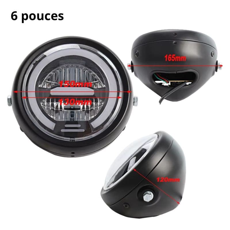 Voici les caractéristiques techniques détaillées du Phare LED Moto Vintage :