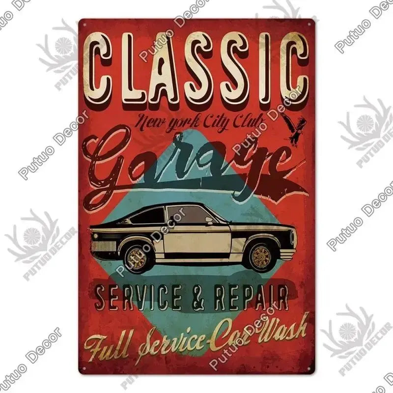 Plongez dans l'univers retro des plaques anciennes dans le thème des garages auto-moto, et découvrez ou redécouvrez les modèles les plus célèbres des années 60. Pins-up et voitures désormais de collection se succèdent dans cette ensemble de designs anciens, pour le bonheur des petits et des grands.