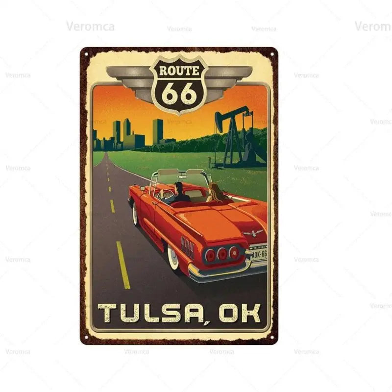 Plaque Métallique Route 66, en route pour la légende
