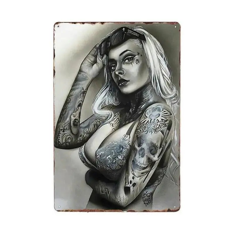 Plaque Métallique Femme Tatouée, le plaisir des yeux et une décoration unique