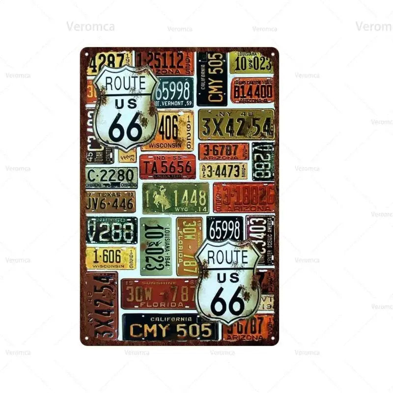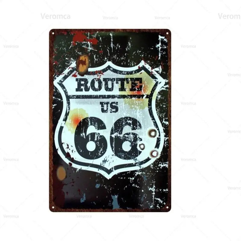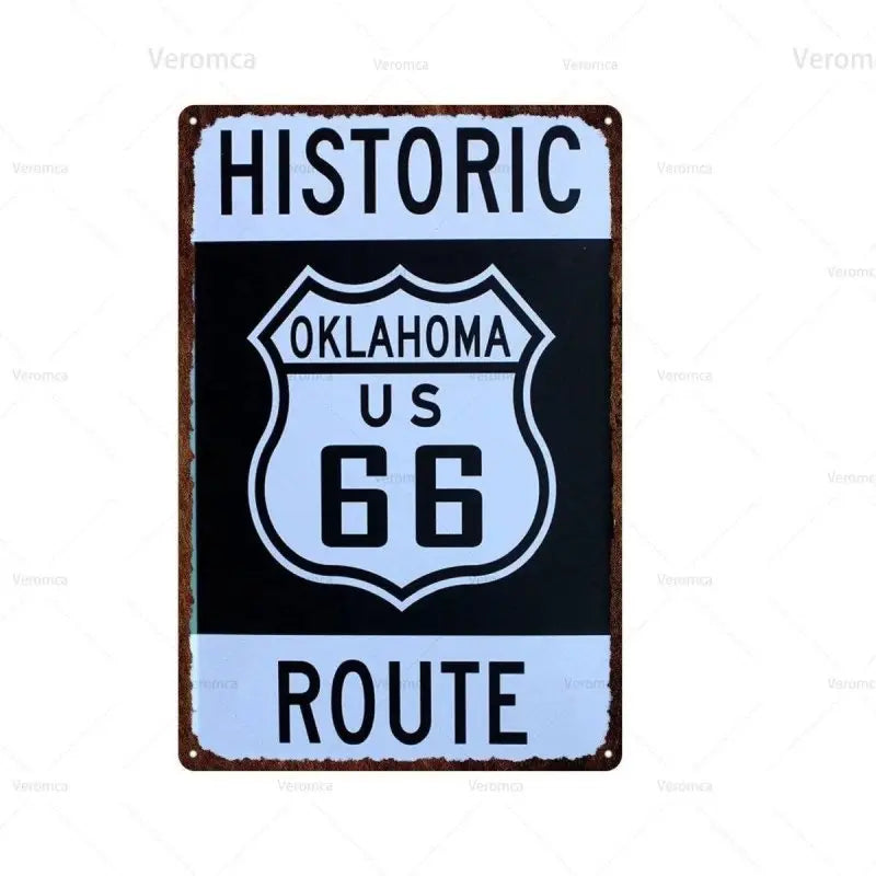 Le voyage nostalgique sur la Route 66 à travers l'ensemble de plaques métalliques rustiques et nostalgiques de la Route 66