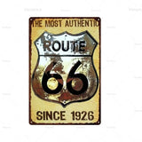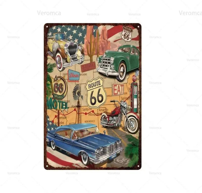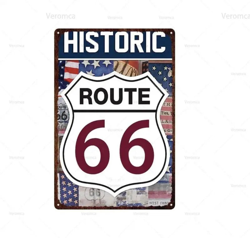 À l'extérieur, à l'intérieur, sur la route ou dans votre voiture. Les plaques métalliques Route 66 sont un moyen de décorer vos murs et de répandre l'amour de la grande route américaine.