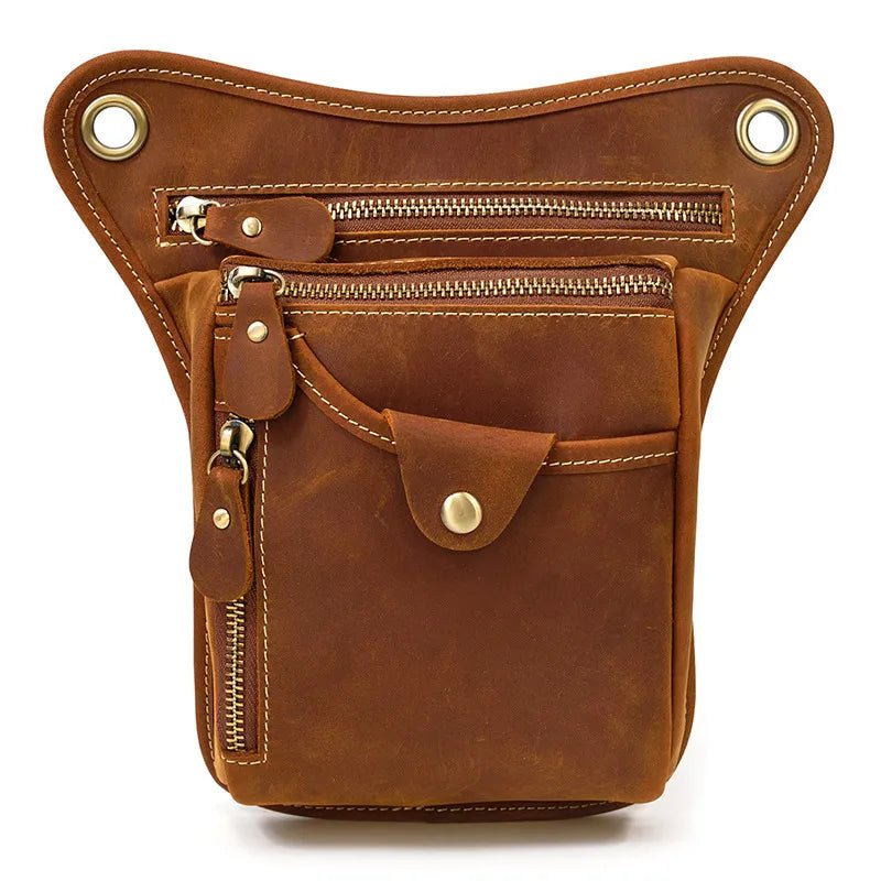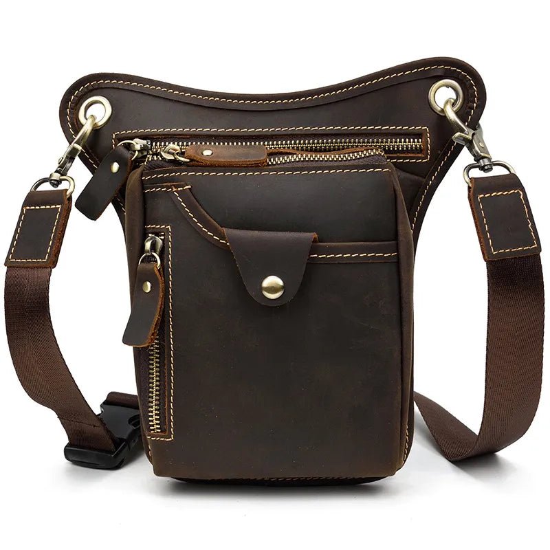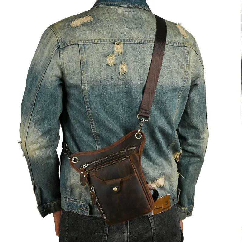 🏍️ Sacoche de Jambe Moto Vintage – Cuir Authentique, Style Brut – Port Jambe ou Bandoulière