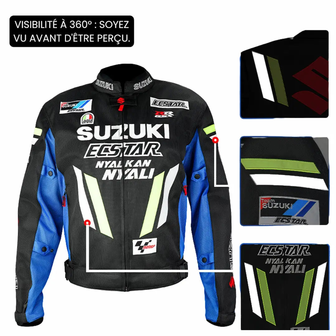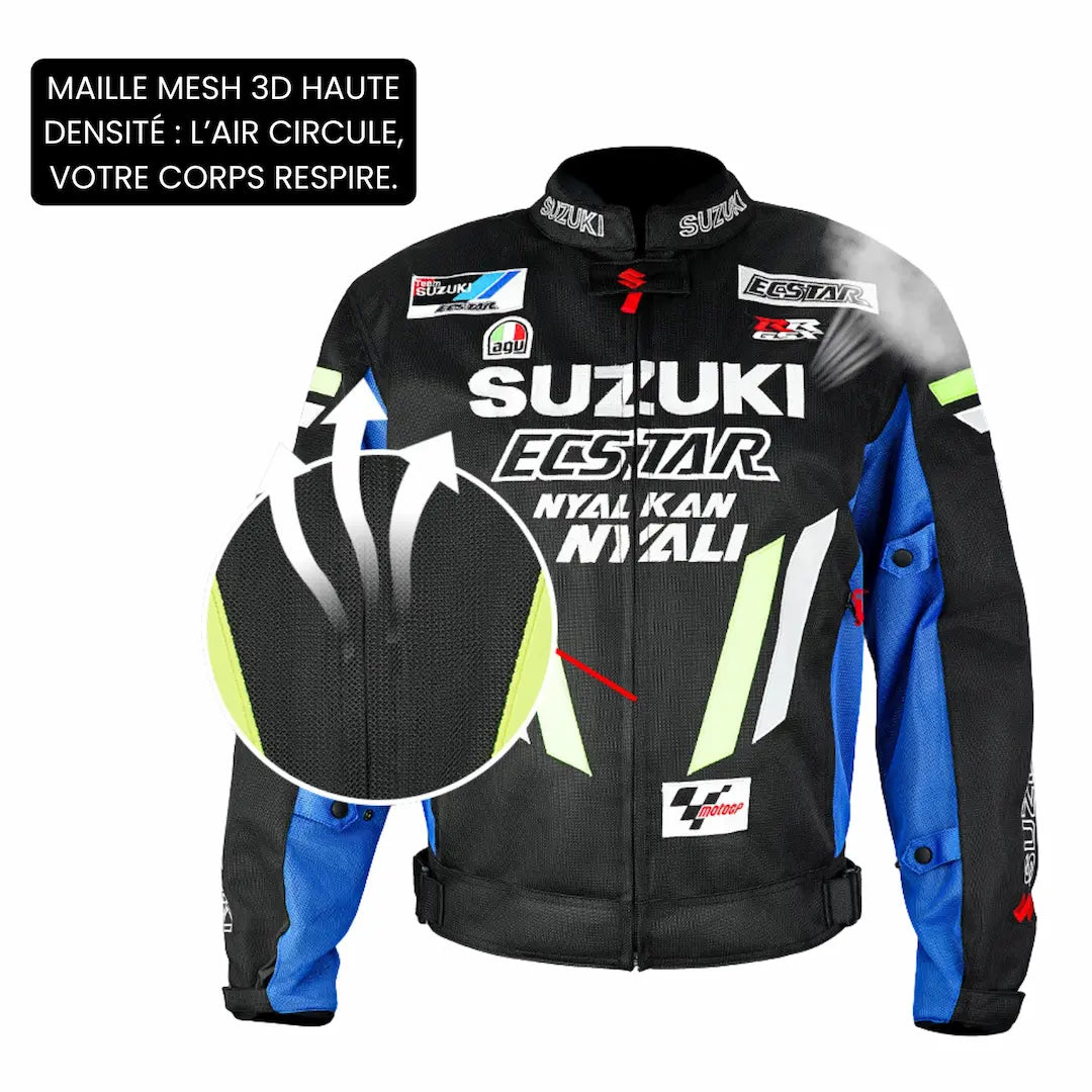 Blouson moto été | Suzuki Bleu et noir