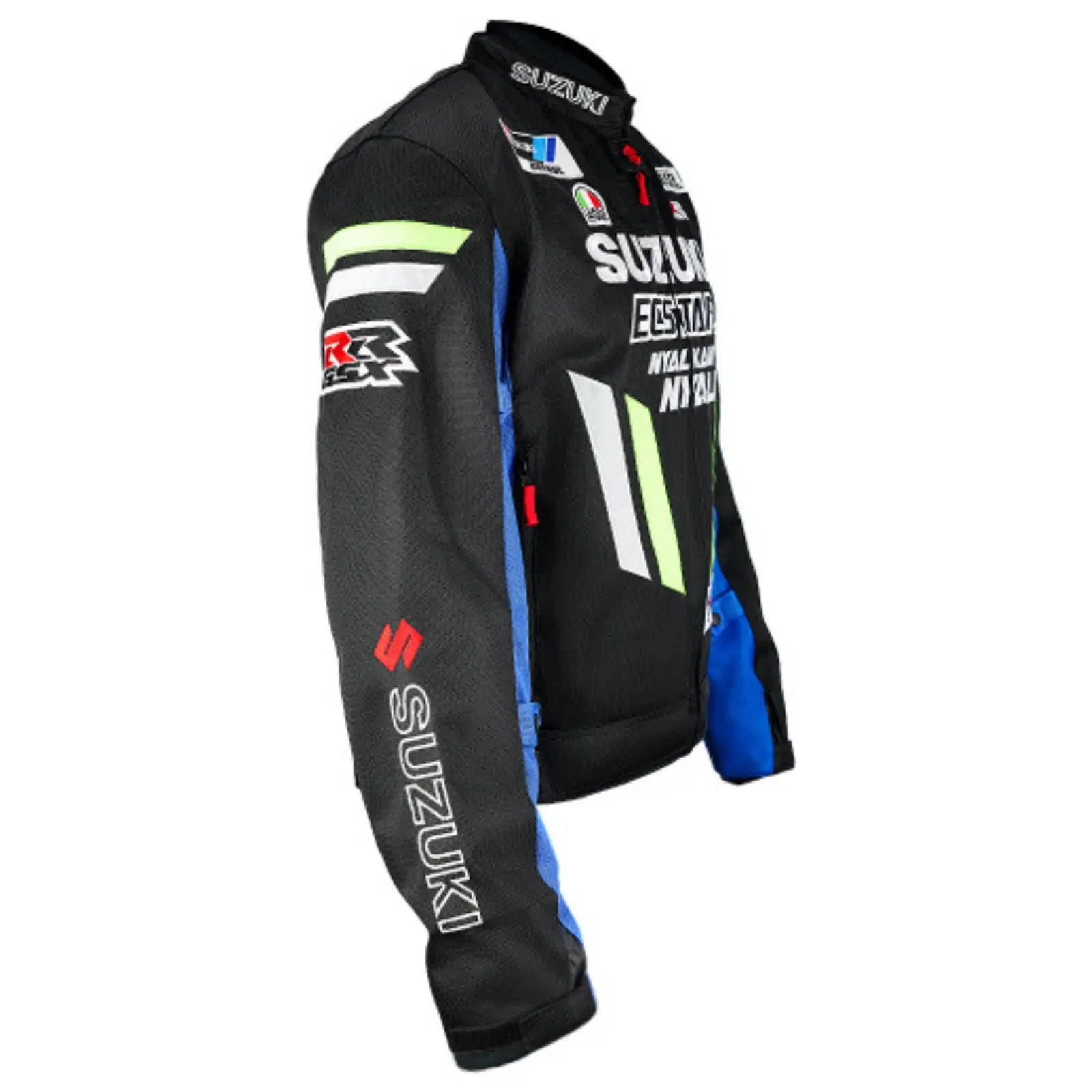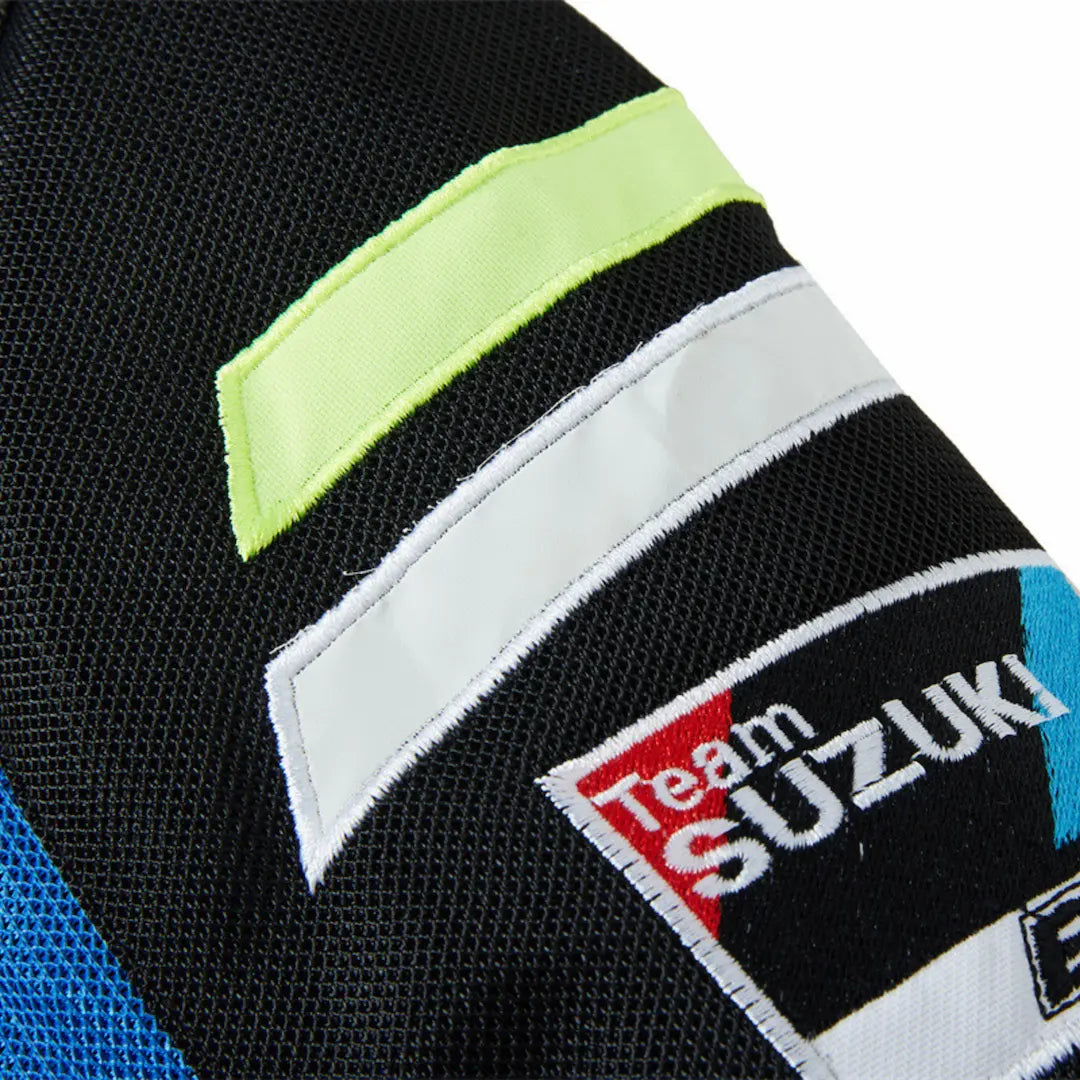 - Passion Suzuki Inconditionnelle : Un design racing officiel en bleu et noir, avec logos brodés pour un look paddock authentique.