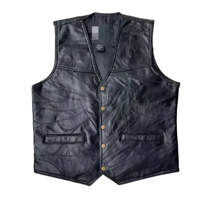 Sublimez Votre Style de Biker Avec le Gilet en Cuir Noir Sans Manche.